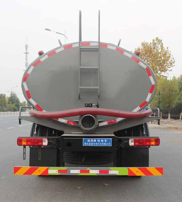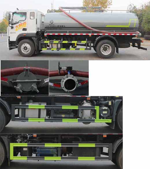 主要專用裝置:罐體及吸糞裝置總成,主要用于抽排運污水、糞便、泥漿等液態污物;罐體總容量:12.34立方米;罐體有效容積:11.73立方米;罐體外形尺寸(×長軸×短軸)(mm):5200×2350×1500;側、后防護材料均為:Q235碳鋼,連接方式均為:螺栓連接,后部防護截面尺寸(mm):120×50,后部防護離地高度(mm):470;ABS系統型號:ABS-VI.E;生產企業:廣州瑞立科密汽車電子股份有限公司.ABS系統型號:ABS-E;生產企業:威伯科汽車控制系統(中國)有限公司,ABS系統型號:3550D-1010;生產企業:東科克諾爾商用車制動系統(十堰)有限公司.采用4500,3950mm軸距.選裝側部及后部出口樣式;隨底盤選裝限速裝置,限速90km/h.選裝尿素罐位置,選裝電瓶位置。