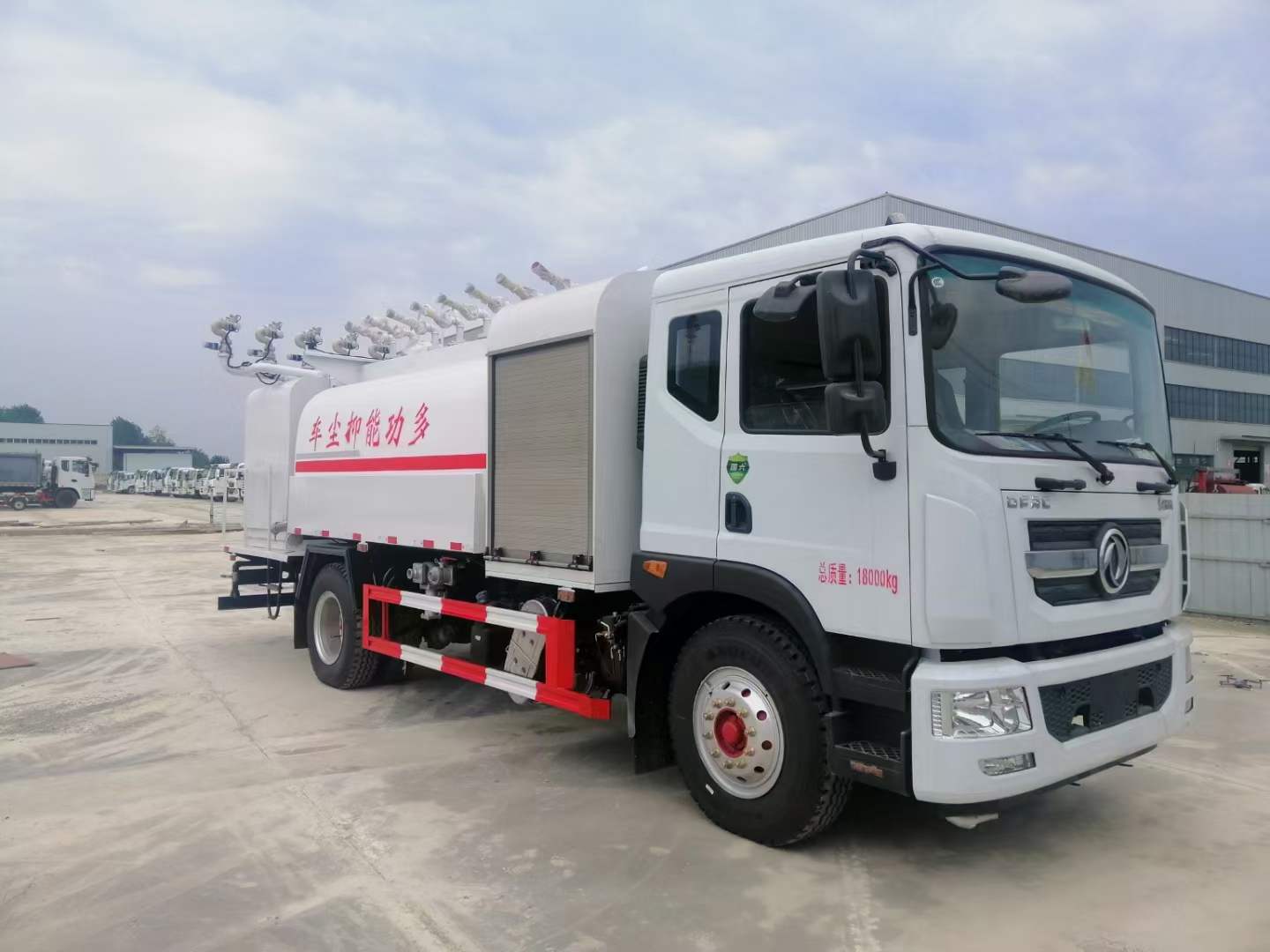 選裝后霧炮裝置。僅采用4500mm,3950mm軸距底盤,整車長/軸距/后懸對應關系(mm):8660/4500/2900,8550/4500/2740,7760/3950/2550,7600/3950/2390;側防護材料Q235,螺栓連接;后防護裝置材料為Q235B,焊接連接,斷面尺寸為:140×50(mm),離地高度為:450mm,ABS系統生產廠家/型號:焦作博瑞克控制技術有限公司/J ABS;該車專用裝置主要是噴霧機,用于降低空氣中的灰塵,霧霾等現象.選裝外觀及后平臺樣式。選裝外觀樣式。