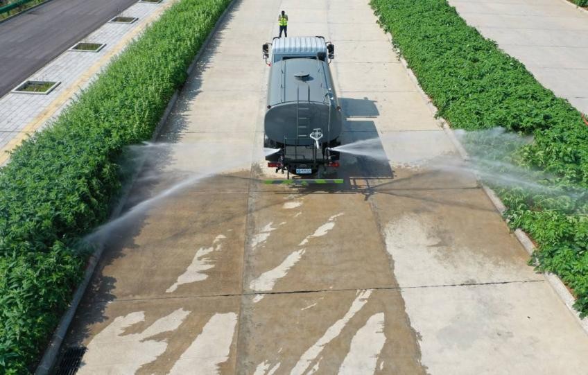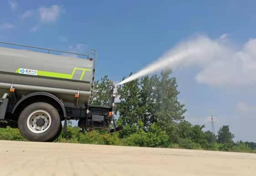 我公司產(chǎn)品標(biāo)配前噴(鴨嘴)、后沖、后灑、側(cè)噴、后置式工作平臺,平臺上配置綠化水炮(可 360°旋轉(zhuǎn),既可以調(diào)成柱狀,也可以調(diào)成霧狀,更可以調(diào)成直沖狀、大雨、中雨、小雨、毛毛雨),配備優(yōu)質(zhì)大功率專用灑水泵(可自吸自排,可從河里或池塘抽水到罐體),取力器,雜物過濾網(wǎng),消防接口,自流球閥系統(tǒng)、取力器、球閥、濾網(wǎng)均為國家標(biāo)準(zhǔn)產(chǎn)品,主管道加粗,法蘭墊、法蘭盤加厚,大通徑球閥。整體具備性能優(yōu)良安全可靠、效率高、流量大、維修方便等特點(diǎn)。