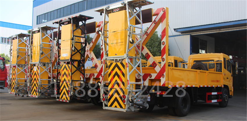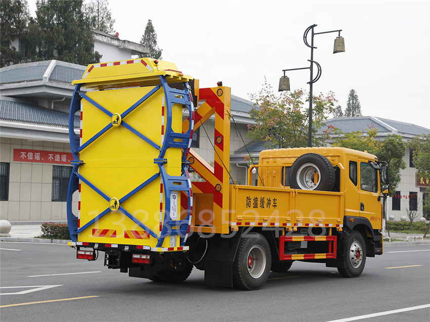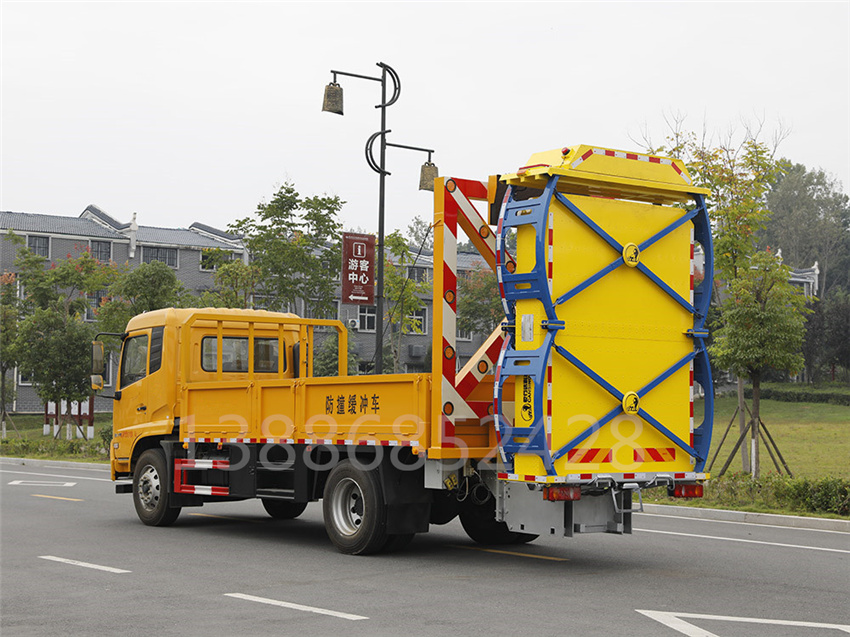 防撞緩沖車采用國(guó)六東風(fēng)天錦底盤。防撞緩沖模塊升降采用液壓控制,過程平穩(wěn)、安全、機(jī)械化作業(yè)程度高,操作方便。防撞緩沖模塊整體采用國(guó)產(chǎn)乾行達(dá)公司技術(shù)產(chǎn)品100E防撞緩沖模塊,太平洋保險(xiǎn)承保。適用于城市道路,郊區(qū)道路,高速公路,機(jī)場(chǎng)橋涵等場(chǎng)合。主要功用:置于道路施工作業(yè)人員和設(shè) 備后方,在發(fā)生追尾事故中充當(dāng)肇事車輛和施工作業(yè)人員或設(shè)備的緩沖區(qū)域,并且通過自身結(jié)構(gòu)變形吸收撞 擊能量,最大限度的降低施工人員或設(shè)備發(fā)生危險(xiǎn)的幾率,同時(shí)最大限度的降低肇事車輛及人員的危險(xiǎn)。