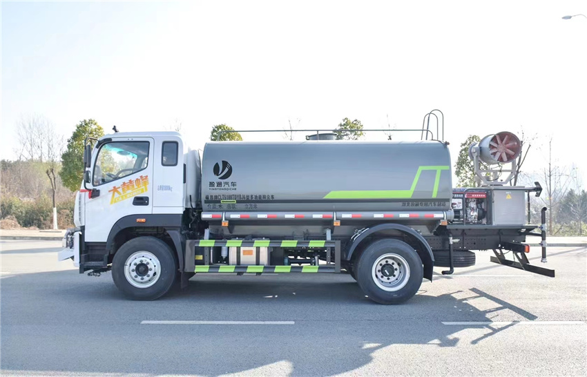 該車主要用于城鄉園林綠化噴灑;主要裝置為罐體及噴灑裝置;罐體總容量:11.03立方米;罐體有效容積:10.5立方米;罐體外形尺寸(×長軸×短軸)(mm):5000×2350×1600,5000×2350×1520;側、后防護材料均為:Q235碳鋼,連接方式均為:螺栓連接,后部防護截面尺寸(mm):120×50,后部防護離地高度(mm):470;ABS系統型號:ABS-VI.E;生產企業:廣州瑞立科密汽車電子股份有限公司.ABS系統型號:ABS-E;生產企業:威伯科汽車控制系統(中國)有限公司,ABS系統型號:3550D-1010;生產企業:東科克諾爾商用車制動系統(十堰)有限公司.采用4500mm軸距。選裝尿素罐位置,選裝電瓶位置;選裝噴灑裝置樣式。選裝后部箭頭燈,選裝后部弧形噴灑裝置,選裝水炮支架位置,選裝高位花灑管道樣式,選裝后部樣式,選裝無高位花灑,選裝自動球閥安裝位置,選裝自動炮裝置樣式,前伸500mm,整車長度為9180,8750(mm)。隨底盤選裝駕駛室。