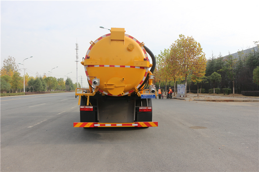 1. 罐體采用的是圓形罐體,結構更緊密,可以耐更高壓力提供更大的吸力, 吸程遠,尾部排放口以液壓油缸伸舉方式設計,可以更全面的排出所吸收的雜質。