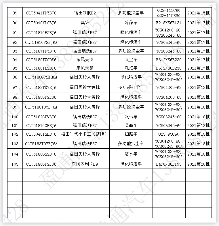 96 CLT5188GPSEQ6A 福田奧鈴大黃蜂 綠化噴灑車 YCS04200-68, YCS06245-60A 2021第18批