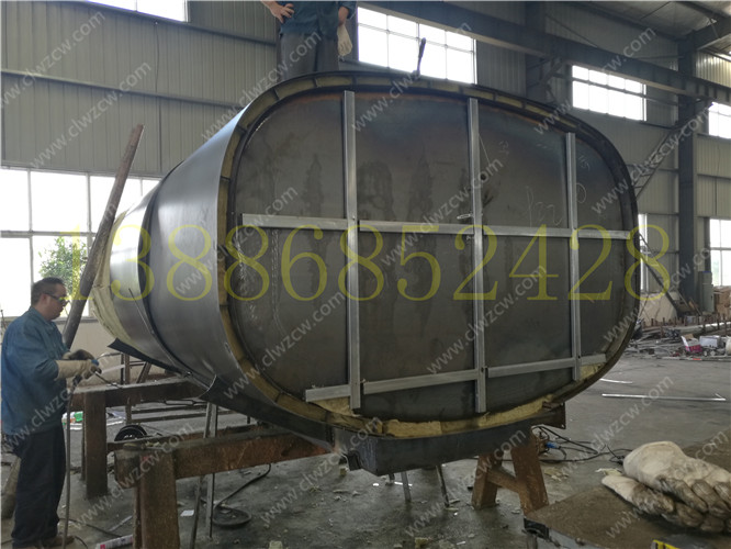 保溫運(yùn)熱水車的裝水容器為帶有保溫層的方形或橢圓形罐體,罐體總成結(jié)構(gòu)類似于一般灑水車的罐體,罐體和封頭采用優(yōu)質(zhì)碳鋼板或不銹鋼板,罐體內(nèi)部設(shè)置防浪 板,減少內(nèi) 部熱水在運(yùn)動(dòng)中對罐體的沖擊。罐體上部人口蓋是方便直接接水或人員進(jìn)出維修,清掃的裝置,人口蓋上部留有通氣孔,裝卸熱水時(shí)起到 罐體內(nèi)外氣體交流的作用。保溫層總成是保溫運(yùn)水車的重要部件之一,其保溫原理是利用保溫材料的保溫特性使得罐體內(nèi)的熱水溫度不向外傳導(dǎo),外部空氣無法接入。