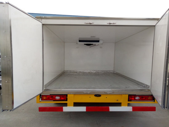 冷藏車廂體:采用國(guó)標(biāo)A級(jí)聚氨酯保溫材料,厚度為8厘米,廂體內(nèi)外采用玻璃鋼材質(zhì)全包裹。不銹鋼鎖件。包角、包邊鋁合金型材。底盤采用高強(qiáng)度花紋鋁板定制。可選裝肉鉤導(dǎo)軌,和底部通風(fēng)槽。