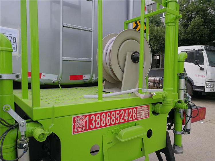 6、灑水車前噴頭位置較低,靠近地面,噴灑壓力較大,可用于沖洗路面;后噴頭位置較高(灑水車后噴頭一般左右各安裝一個),灑水面較寬,可用于公路施工灑水,使用后噴頭時,應將前噴管關閉;使用可調噴頭灑水時,灑水寬度可根據需要調整。灑水寬度越寬,中間重疊量越少,灑水密度越均勻。